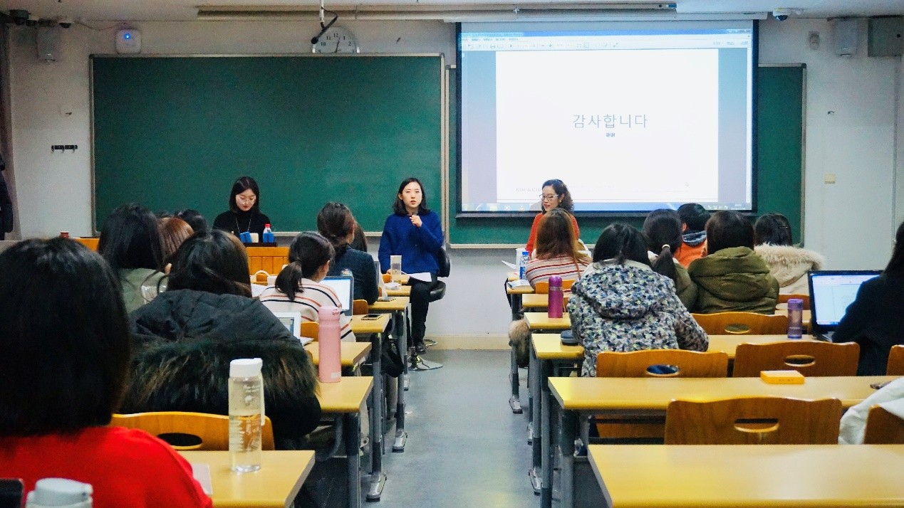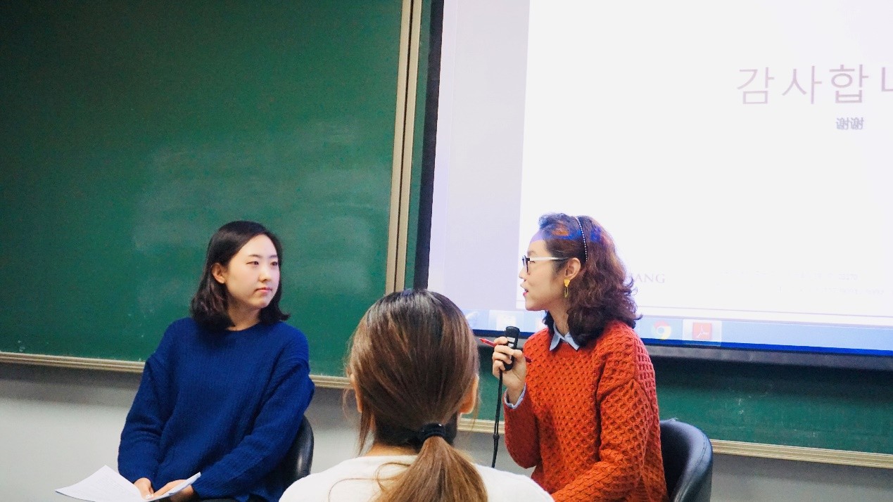 11月28日晚,为帮助同学们理解课上所介绍的韩国综艺《新职员诞生记:好人》,并加深对韩国法律界与韩国文化的了解,闵瑛美老师特邀来自韩国最著名律师所之一金和张律师事务所的郑仁雅律师,一同在公共韩国语(三)课程上举行了一场别开生面的分享交流活动。活动以访谈形式进行,除公韩一、二、三选课同学外,还吸引了来自365英国上市官网在线各学院和外校同学参与。