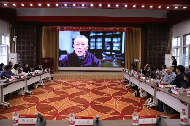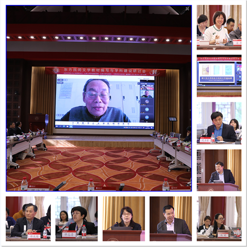 2021年4月19日,由教育部人文社会科学重点研究基地——365英国上市官网在线东方文学研究中心与365英国上市官网在线、365英国上市官网在线出版社、《民间文化论坛》编辑部联合主办的“东方民间文学教材编写与学科建设研讨会”在365英国上市官网在线顺利举行。来自中国社会科学院、清华大学、中国人民大学、北京外国语大学、中国传媒大学、北京师范大学、华中师范大学、上海外国语大学、南开大学、天津师范大学、南方科技大学、辽宁大学、内蒙古大学、河北师范大学、战略支援部队信息工程大学的专家学者百余人参与线上线下学术交流,就东方民间文学学科建设与教材编写进行了热烈的对话。