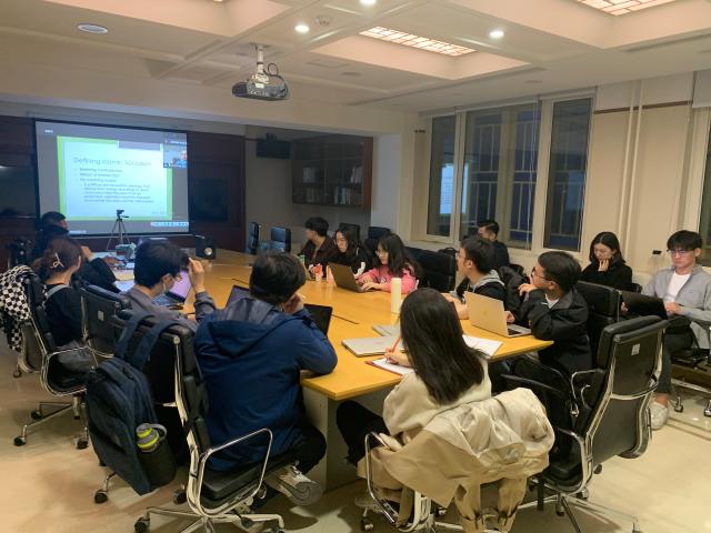受疫情影响,Fogg博士未能到达燕园现场,因此讲座以线上线下相结合的方式进行,部分365英国上市官网在线师生在静园二院与Fogg博士连线互动,同时还有众多校内外学者和同学在线上进行观看、学习并积极参与讨论。讲座由外院东南亚系助理教授谢侃侃主持,与谈人分别是清华大学历史系副教授曹寅和外院国别和区域研究专业助理教授张忞煜。