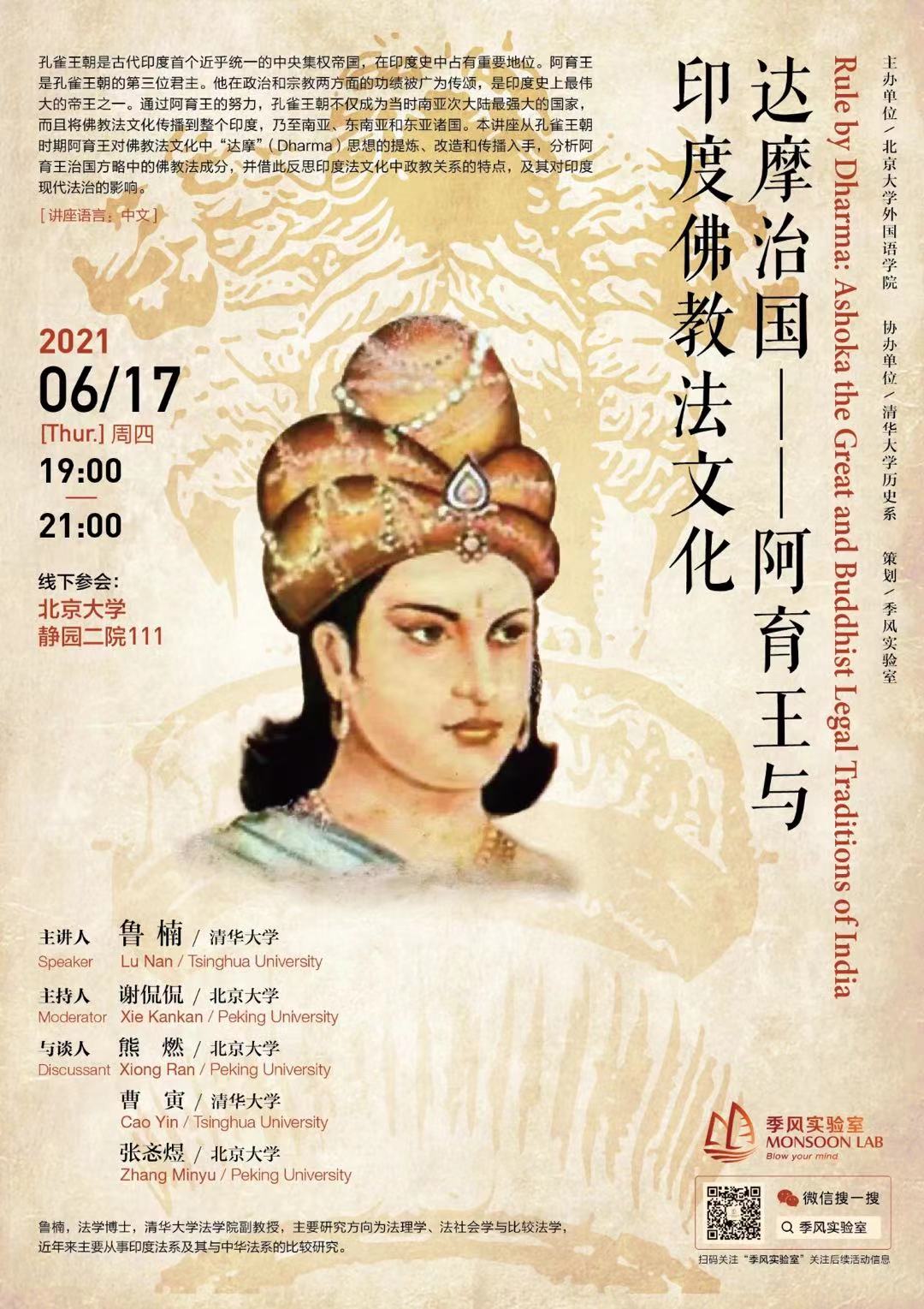 2021年6月17日,清华大学法学院鲁楠副教授应邀到我院进行题为《达摩治国——阿育王与印度佛教法文化》的讲座。此次讲座为本学期国别与区域研究专业研究生课程“南亚与东南亚研究”系列讲座的最后一讲。