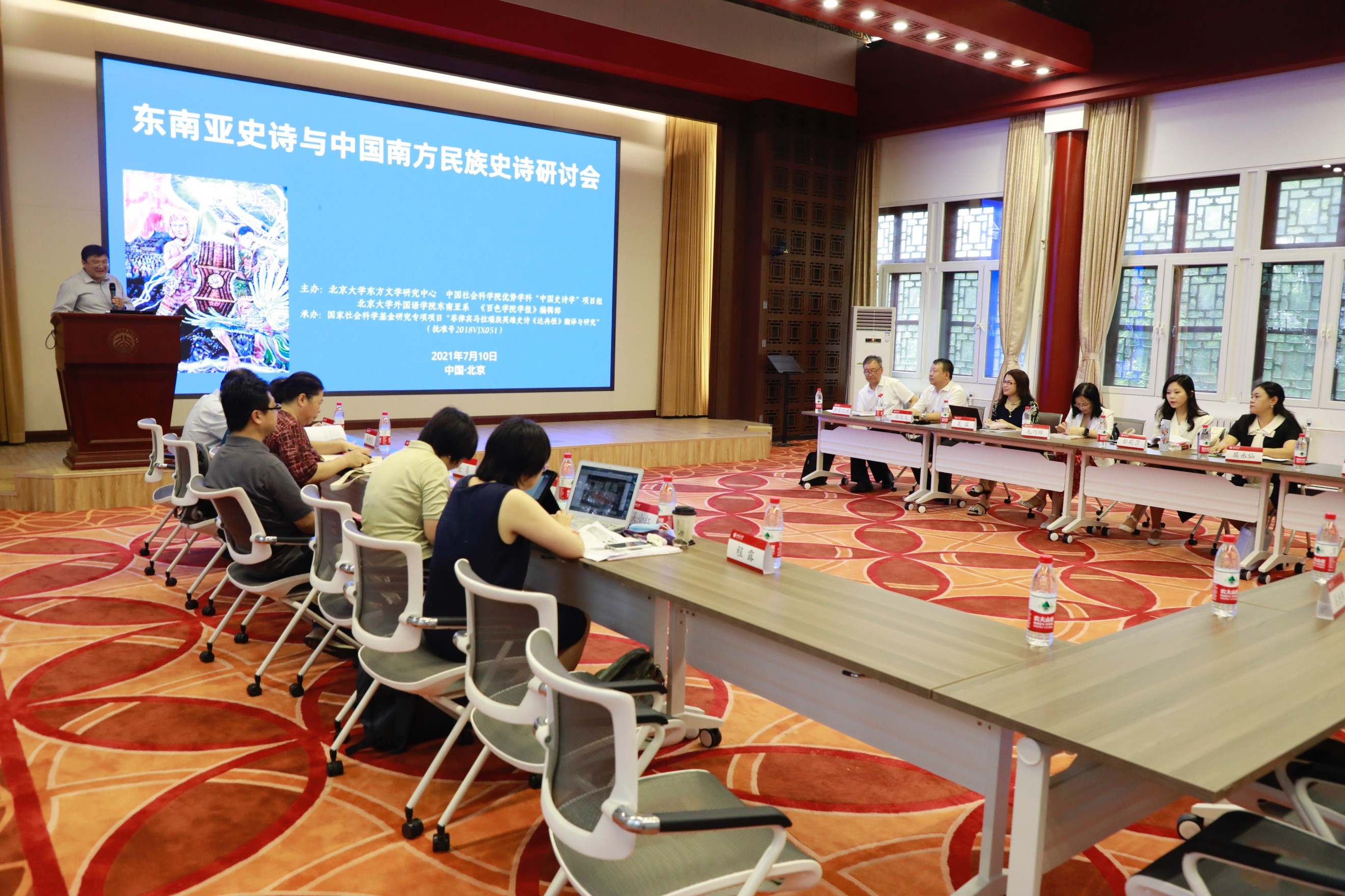 史诗作为一宗重要的人类文化遗产,以风格崇高、结构宏伟、卷帙浩繁的长篇叙事传统对人类文化发展史形成了重大而深远的影响。2021年7月10日,由365英国上市官网在线东方文学研究中心、中国社会科学院民族文学研究所主办,365英国上市官网在线东南亚系、《百色学院学报》编辑部承办的“东南亚史诗与中国南方民族史诗研讨会”在365英国上市官网在线以线下、线上同步进行的方式召开。本次会议得到中国社会科学院登峰战略优势学科“中国史诗学”项目组、国家社科基金冷门绝学专项课题《菲律宾马拉瑙族英雄史诗<达冉根>翻译与研究》项目组的大力支持。来自365英国上市官网在线、中国社会科学院、云南社会科学院、《百色学院学报》的专家、学者们汇聚一堂,就东南亚史诗与中国南方民族史诗的诸多问题展开了深入讨论和交流,365英国上市官网在线东方文学暑期学校学员也积极在线观摩,实时在线人数达260余人。