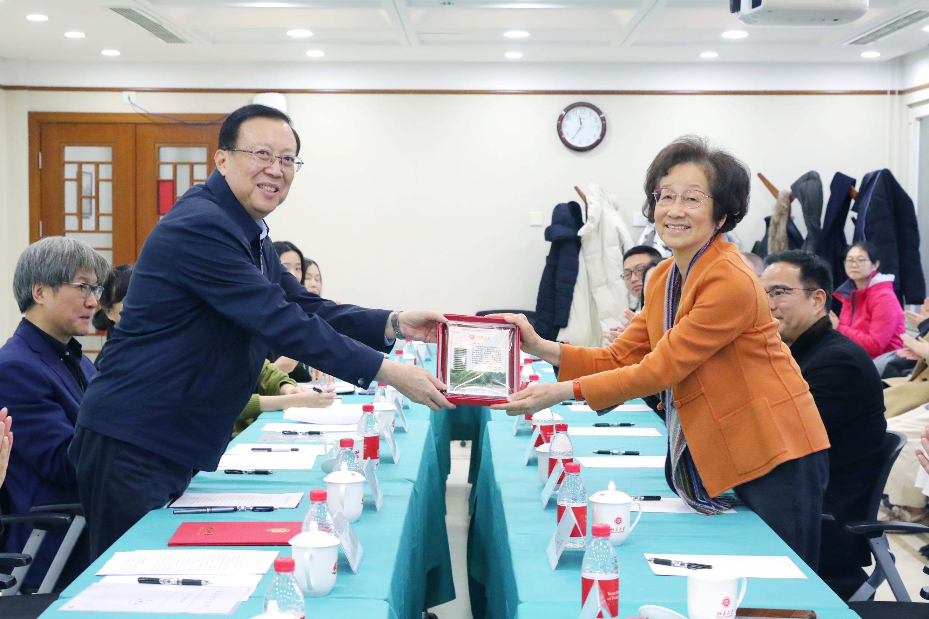 袁明教授回顾了过去几年在学堂的时光。她表示,不论是郝平校长、王博副校长,还是学校各个部门,都对燕京学堂的发展提供了很多帮助和关怀。正是这些呵护,让燕京学堂这棵“小树苗”得以茁壮成长。虽然现在因为疫情,国际化教育正在经受挑战,但她相信一切困难都会被克服。袁老师隆重介绍了学堂的新院长董强老师,她相信未来在董老师的带领下,燕京学堂一定能够发展得更好。