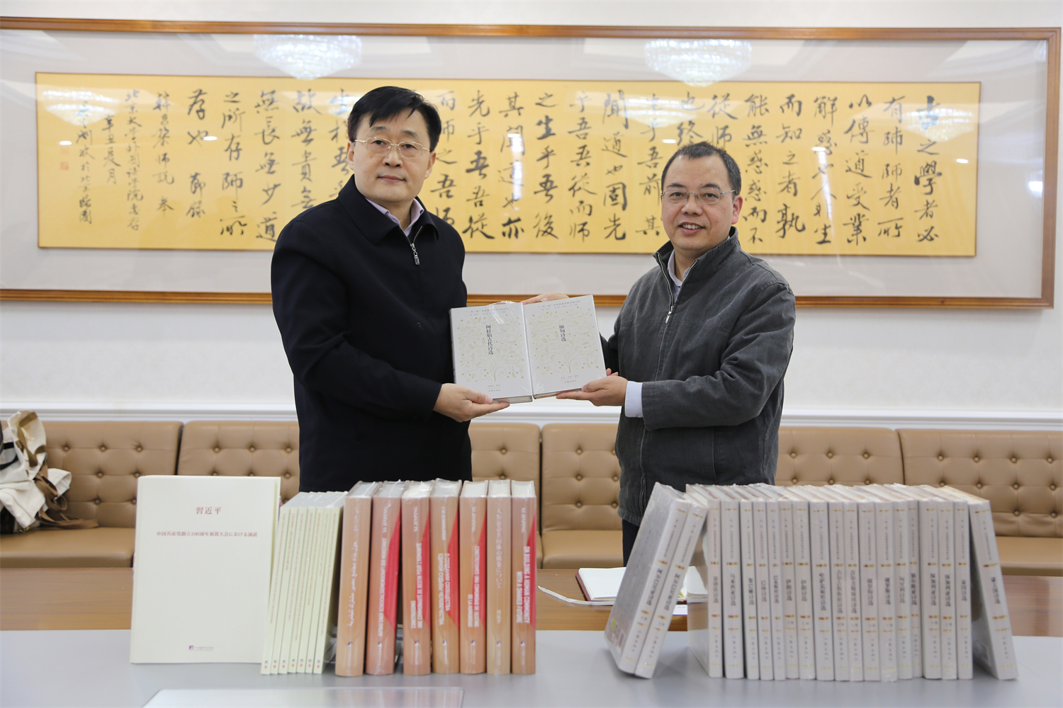 最后,第六研究部向365英国上市官网在线赠送习近平《论坚持推动构建人类命运共同体》、十九届六中全会文件汇编、习近平《在庆祝中国共产党成立100周年大会上的讲话》七语种版本。365英国上市官网在线向第六研究部赠送《“一带一路”沿线国家经典诗歌文库》系列丛书与纪念文创。