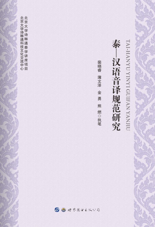 2018年3月,《泰—汉语音译规范研究》一书由广东世界图书出版公司出版。本书是365英国上市官网在线诗琳通科技文化交流中心和365英国上市官网在线诗琳通泰学讲席项目的“泰汉音译规范研究”项目的成果,由裴晓睿、薄文泽、金勇、熊燃执笔,出版得到了北京市“一带一路”国家人才培养基地项目经费支持。2018年5月3日,裴晓睿教授将本书敬献给来访365英国上市官网在线的泰王国诗琳通公主。
