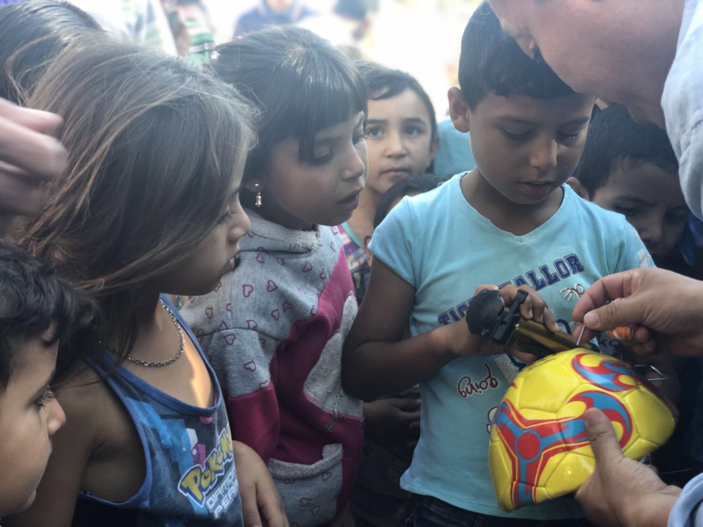 在黎巴嫩,代表团前往贝卡谷地的第三大城镇Qabb Ilyas的一个难民临时安置点进行调研。该安置点共有35户家庭,共285人,基本来自于叙利亚阿勒颇市,类似这样的定居点贝卡谷地还有40个,约有3万难民。他们基本依靠联合国难民署和儿童基金会等国际组织及当地政府的援助生存,其他收入则源于给当地地主和商人打散工获得的收入。在这些临时安置点居住,难民是需要向黎巴嫩政府支付费用的,此外,住户还要将国际组织及当地政府的捐助、平时劳动的微薄收入及家庭积蓄用于支付诸如水费、电费,地租等各类费用。公共医疗和儿童的基础教育仍是难民最迫切解决的问题。大部分家庭在此居住已达6到7年,大量适龄儿童无法得到正常的教育,特别是出生在临时安置点的孩子们更是渴望有机会上学。参访中,代表团发放了专门为该临时安置点儿童采购的彩笔、画册、足球和文化衫等学习物资。