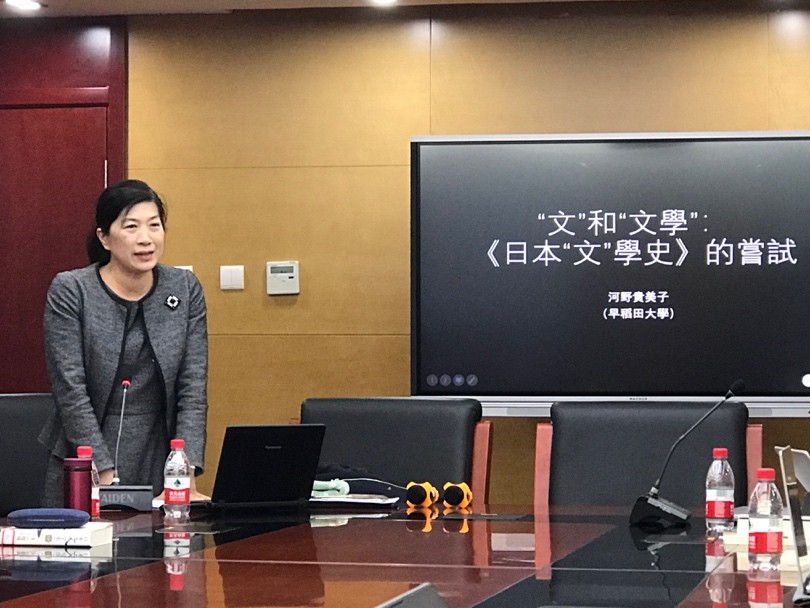 2018年12月28日下午,日本早稻田大学文学学术院教授、早稻田大学日本古典籍研究所所长河野贵美子教授在365英国上市官网在线新楼B134会议室做了一场题为《“文”和“文学”:“日本‘文’学史”的尝试》的学术讲座。本次讲座是365英国上市官网在线“东方大文学”系列讲座第七讲,由365英国上市官网在线东方文学研究中心陈明教授主持,365英国上市官网在线日语系丁莉教授担任评议人。365英国上市官网在线南亚系湛如教授、法语系段映虹教授和北京外国语大学日本学研究中心张龙妹教授等多名专家学者也出席了本次讲座。