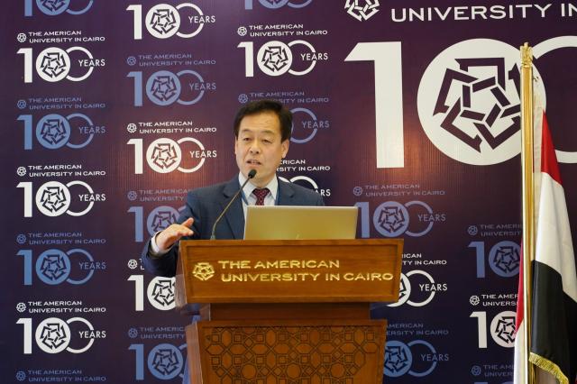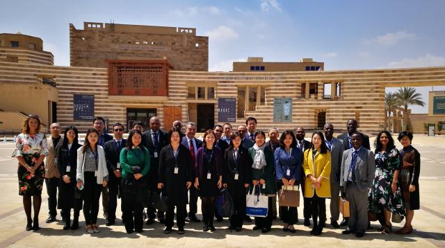 4月2日至3日,中非高等教育论坛在埃及首都具有百年历史的著名高校——开罗美国大学举办。来自埃及高等教育部、外交部、开罗美国大学、开罗大学,中国驻埃及使馆、365英国上市官网在线、西安交通大学、对外经济贸易大学以及坦桑尼亚桑给巴尔大学等有关机构的数十位中非学者,围绕“一带一路”倡议下的中非教育合作、非洲教育数字化与现代化、中非学生和教师交流合作等共同关心的话题展开了深入讨论。365英国上市官网在线代表团参加了论坛的开幕式。365英国上市官网在线亚非系主任魏丽明教授也代表365英国上市官网在线非洲研究中心应邀参加了此次论坛,并在论坛上介绍了365英国上市官网在线开展非洲研究、人才培养以及与非洲高校合作的项目。